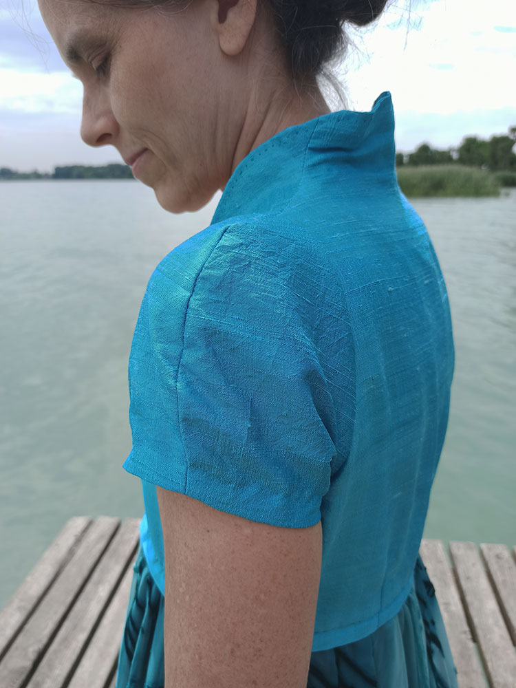 Furthermore I find it can be flattering with a little standing neck/collar, if you’ve got long hair to do an updo hairstyle.