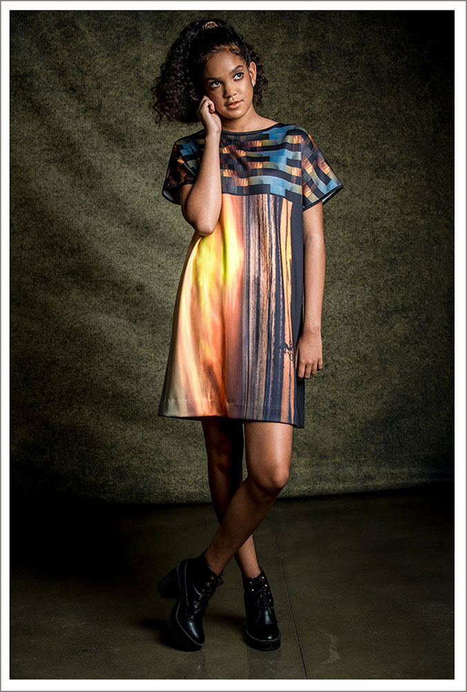 The fabric in this garment is a lightweight, double-knit polyester. Since I was sublimating the imagery onto the fabric, I needed to use a polyester fabric. - Note how much Ease exists – Pay attention to how much ease is in the garment at the bust (if a top) or at the hips (if a bottom). This is directly tied to the fabric.